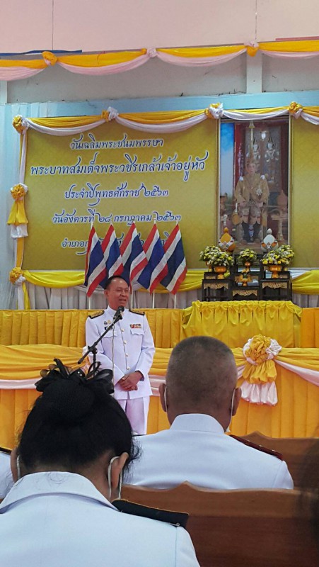 ข้าราชการครูเข้าร่วมพิธีถวายราชสดุดี พระบาทสมเด็จพระเจ้าอยู่หัว รัชกาลที่ 10 เนื่องในวันคล้ายวันพระราชสมภพ ณ อำเภอกุดจับ