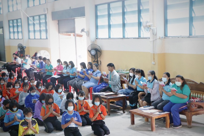 กิจกรรมทางศาสนา "การนั่งสมาธิ" คณะครูและนักเรียนโรงเรียนเชียงเพ็งวิทยา วันที่ 21 สิงหาคม 2563