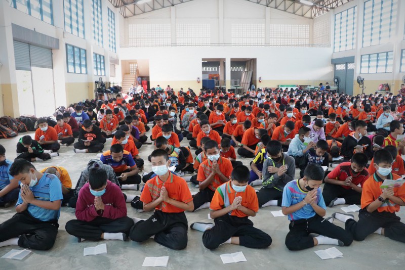 กิจกรรมทางศาสนา "การนั่งสมาธิ" คณะครูและนักเรียนโรงเรียนเชียงเพ็งวิทยา วันที่ 21 สิงหาคม 2563