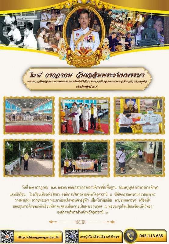วันที่ 28 กรกฎาคม 2566 เวลา 06.30 น. ผู้บริหารคณะครูและบุคลากรทางการศึกษาโรงเรียนเชียงเพ็งวิทยา องค์การบริหารส่วนจังหวัดอุดรธานี ๑ ร่วมพิธีทำบุญตักบาตรถวายพระราชกุศลและร่วมพิธีถวายสัตย์ปฏิญาณเพื่อเป็นข้าราชการที่ดีและพลังของแผ่นดิน ประจำปี 2566