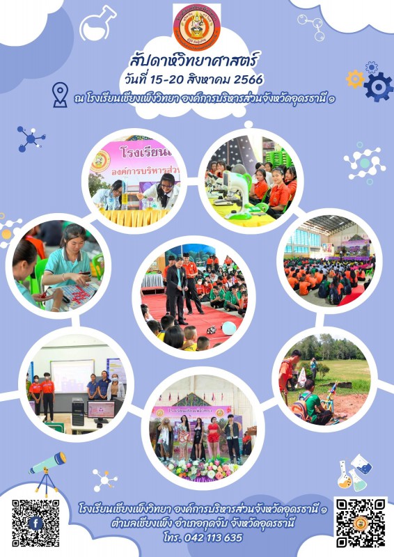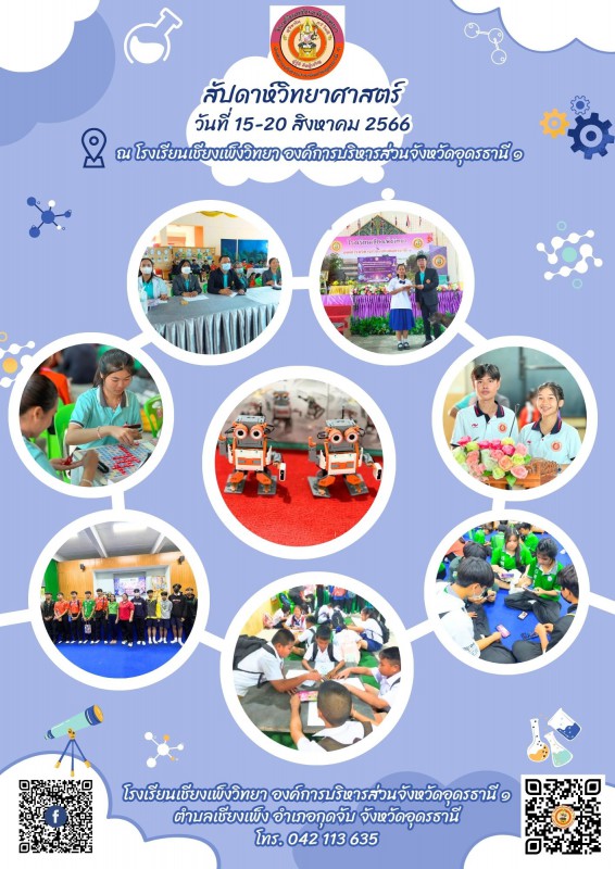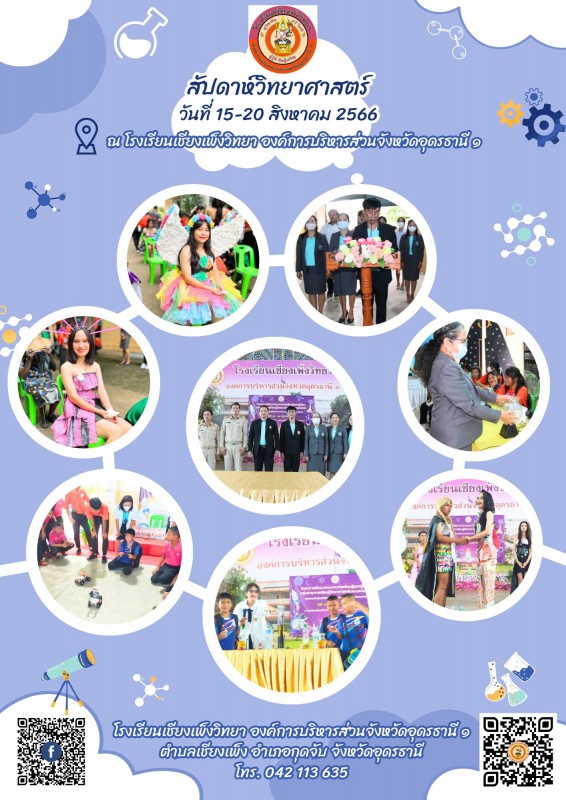 วันที่ 21 สิงหาคม 2566 นายเกรียงศักดิ์ เพชรดี ผู้อำนวยการโรงเรียน พร้อมคณะครู บุคลากรทางการศึกษา และนักเรียนโรงเรียนเชียงเพ็งวิทยา ร่วมจัดกิจกรรมสัปดาห์วิทยาศาสตร์แห่งชาติ ณ หอประชุมโรงเรียนเชียงเพ็งวิทยา อบจ.อด.๑