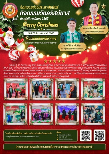 โรงเรียนเชียงเพ็งวิทยา องค์การบริหารส่วนจังหวัดอุดรธานี ๑ ในวันที่ 25 ธันวาคม 2567 ด้วยกลุ่มสาระการเรียนรู้ภาษาต่างประเทศ จัดกิจกรรมวันคริสต์มาส ปีการศึกษา 2567 โดยนายเกรียงศักดิ์ เพชรดี ผู้อำนวยการโรงเรียน เป็นประธานในพิธีเปิดกิจกรรม พร้อมด้วยผู้บริหาร ค