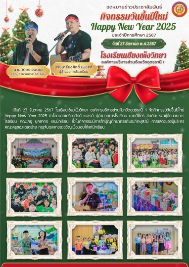 วันที่ 27 ธันวาคม 2567 โรงเรียนเชียงเพ็งวิทยา องค์การบริหารส่วนจังหวัดอุดรธานี ๑ จัดกิจกรรมวันขึ้นปีใหม่ 2568 โดยมีการทำบุญตักบาตร การแสดงของผู้บริหาร คณะครู และการมอบของขวัญให้แก่นักเรียน